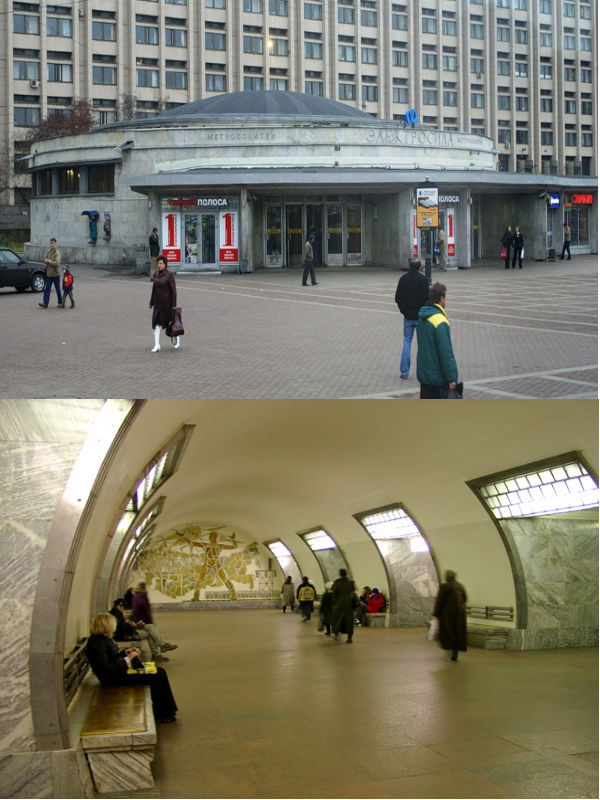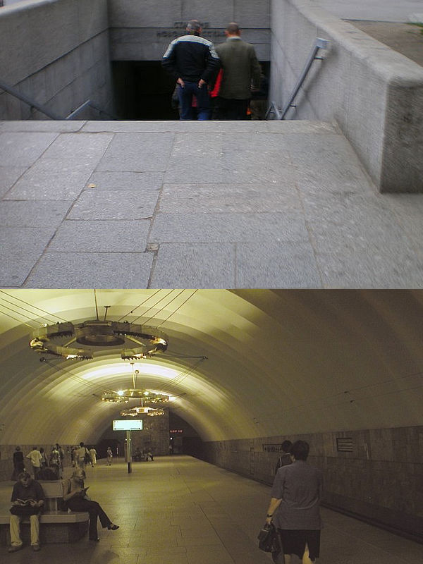Вход в наземный вестибюль со стороны улицы Кантимировская. Над эскалаторным